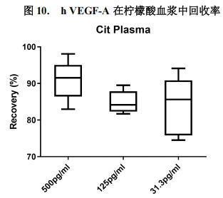 | 回收率 | 人血清中平均回收率:84.9~90.7% 人血浆(EDTA)中平均回收率:86.2~89.3% 人血浆(柠檬酸)中平均回收率:83.8~90.9% 细胞培养上清中平均回收率:82.7~97.9% |