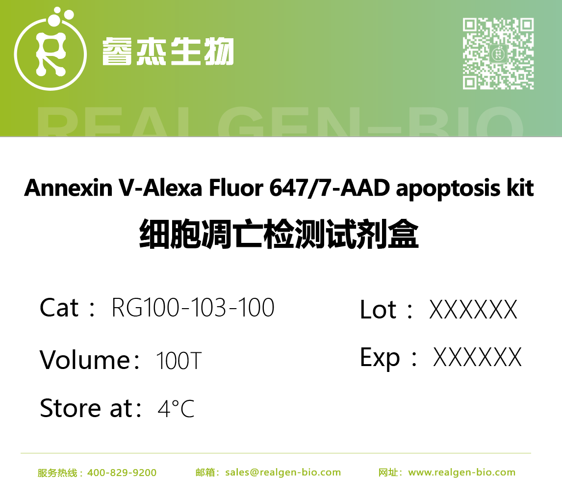 4℃保存,Annexin V-AF647和7-AAD需避光保存;试剂长期不用放-20℃保存;避免反复冻融。